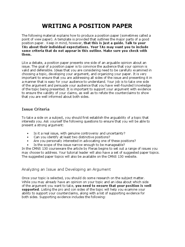 Writing A Position Paper Argument Idea from imgv2-1-f.scribdassets.com Most model un conferences require delegates to submit a position paper, an essay covering a country's perspective on the assigned topics of a conference. The position paper helps the delegates organize their ideas and share their country's foreign policy with the rest of the committee. To share your opinion with the. Position essays make a claim about something and then prove it through arguments and evidence. All other students must submit their first position paper by january 9 to be eligible for awards unless you have. Position papers are essential to successful preparation. Good luck writing your own! The process of writing a position paper will assist you in the research of your topics.